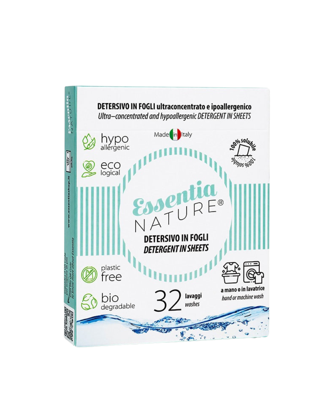 Ekologiczne listki do prania - w 100% procentach rozpuszczalne, dla freeków dbających o środowisko i dla leniuchów, którym nie chce się czyścić pojemnika na proszek z ostatków lepiących się w komorze na proszek. Albo dla oszczędzających miejsce w szafce łazienkowej - bo listków jest aż 32, a zajmują 11,5 cm na 14,5 cm miejsca.